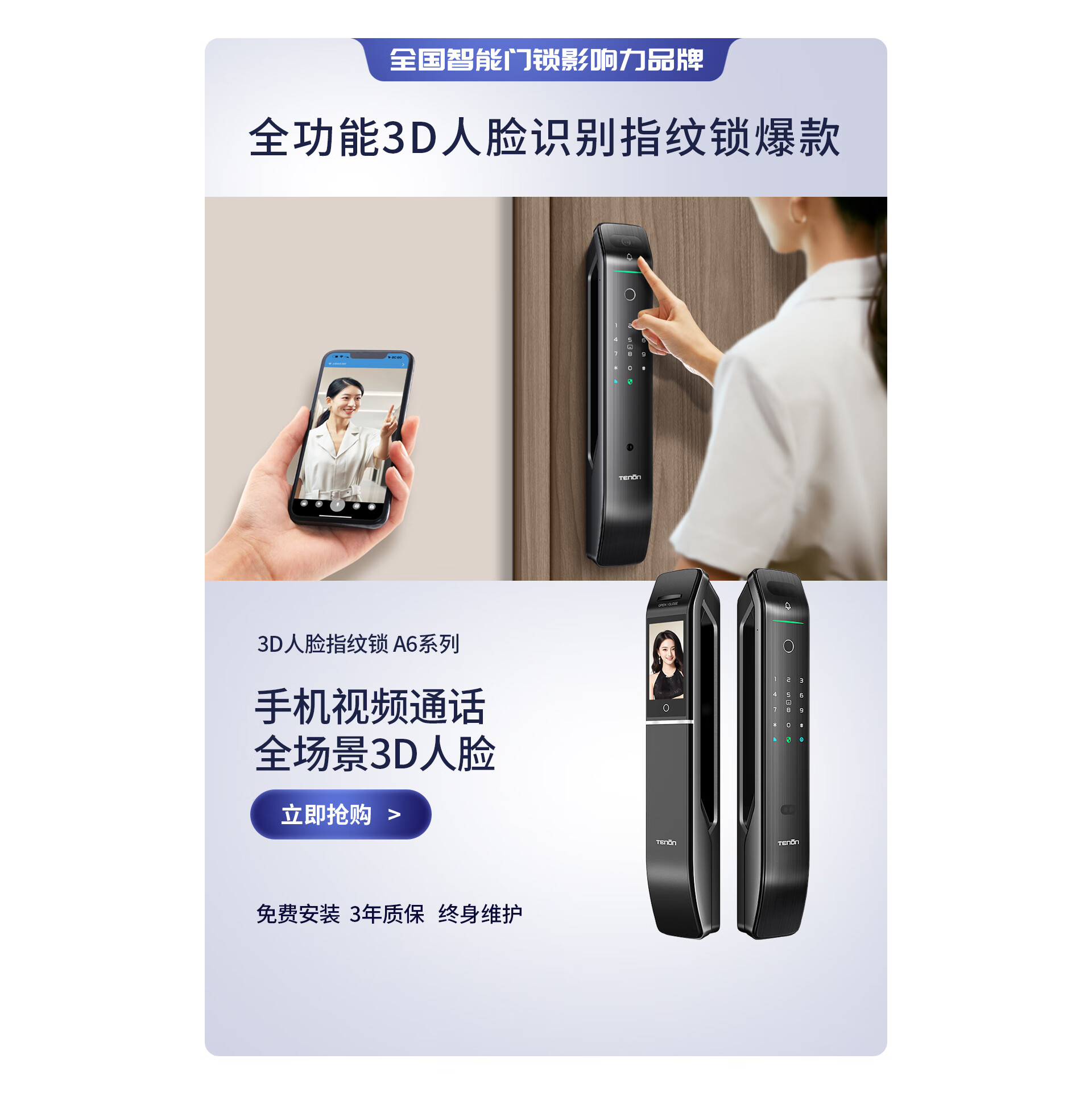 智能锁人脸识别款A6s